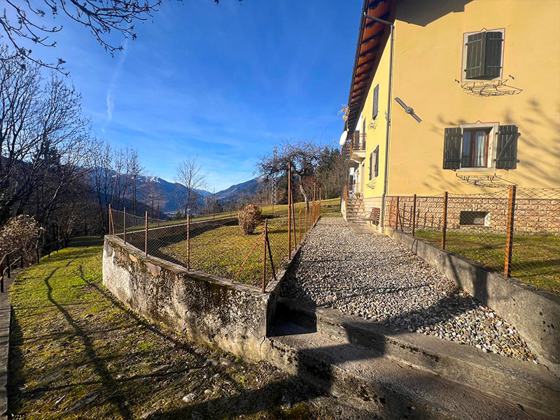 In posizione panoramica (Tavielle di Tausia), adiacente alla Via Monte Dimon casa a schiera (su un lato) composta da due cantine e disimpegno al piano scantinato, ingresso cucina e soggiorno al piano terra – rialzato, disimpegno bagno e due camere al piano primo, disimpegno e soffitta al piano secondo sottotetto. Completa la proprietà ampio giardino di circa 300 mq. Pianeggiante. Le altezze del sottotetto sono adeguate ad un cambio di destinazione in camere. La proprietà si raggiunge solo pedonalmente da altra proprietà, non ha accesso carraio. All'interno dell'abitazione non è presente l'impianto di riscaldamento, è dotata di boiler elettrico per l'acqua calda sanitaria. E' priva di isolamento termico. L'immobile è stato interessato da adeguamento antisismico negli anni 1980. L'immobile risulta attualmente occupato dalla proprietaria, il quale sarà liberato all'atto di vendita.